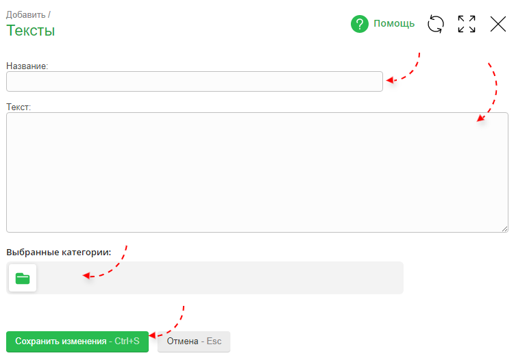- При необходимости привяжите текст к категории,