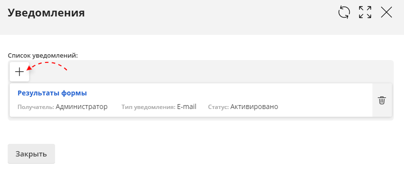 Чтобы посетителю сайта, заполнившему форму, на почту приходило уведомление, в окне со списком уведомлений нажмите на кнопку "+"("Создать").