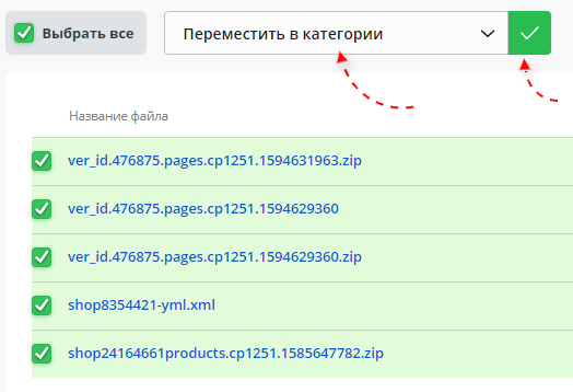 В открывшемся окне отметьте те категории, в которые необходимо переместить выбранные файлы, и нажмите "Сохранить изменения".