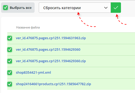 С помощью данной операции вы можете удалить выбранные файлы из категорий, в которых они находятся (например, если файл находился в "Категории-1", и мы с помощью данной операции удалили его из "Категории-1", товар будет помечен как "Без категорий").