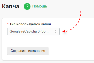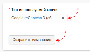 При необходимости вы можете выбрать, какой тип капчи следует использовать в формах на сайте.