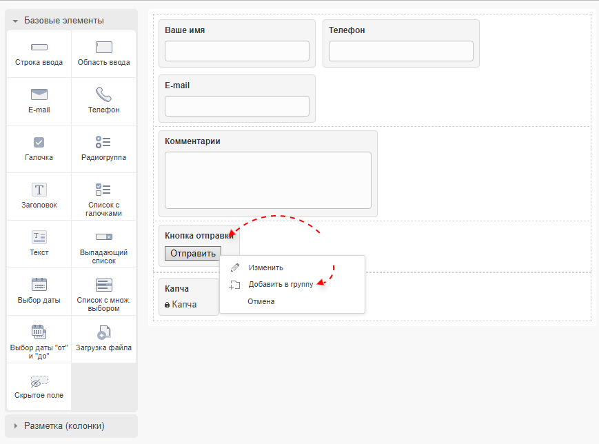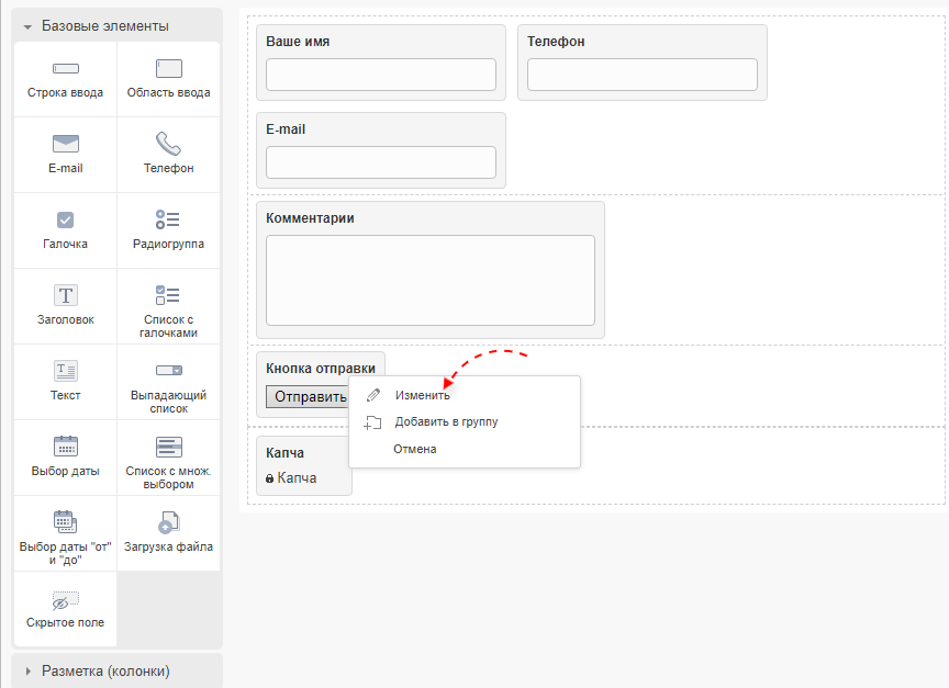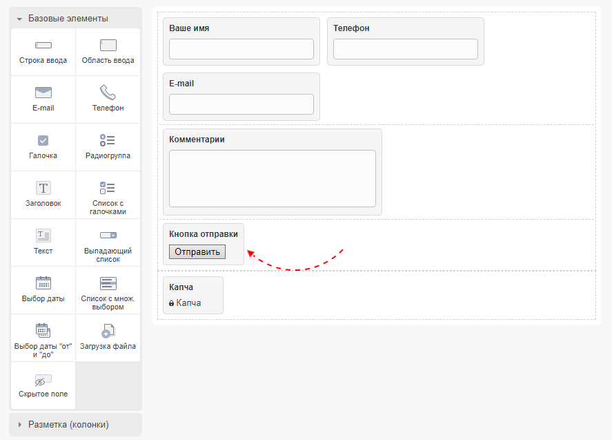 При необходимости вы можете переместить кнопку отправки, а также задать условия для ее отображения.