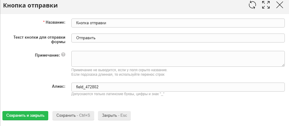 - Название - задайте наименование для кнопки или оставьте название по умолчанию. Оно указывается исключительно для удобства и отображается только в системе управления.