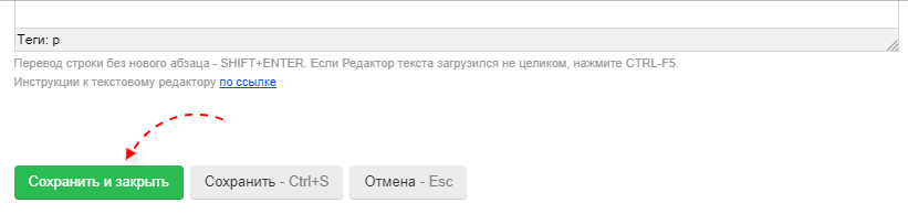 Не забудьте сохранить изменения, нажав на кнопку "Сохранить и закрыть".