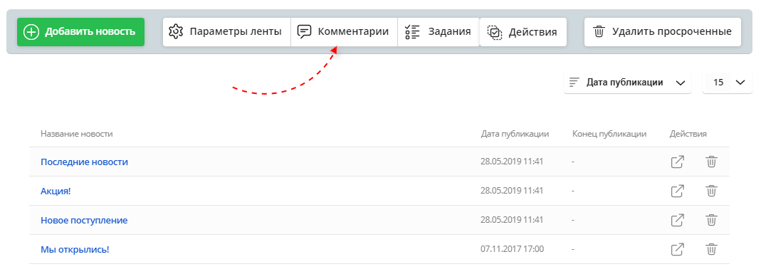 Вы также можете задать количество комментариев, отображаемых на странице новости. Для этого просто выберите из выпадающего списка необходимое число.