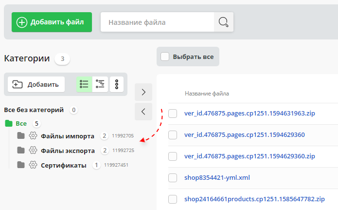 - Список всех файлов раздела (Все).