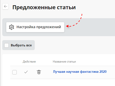 В разделе редактирования ленты нажмите на кнопку "Предложения".